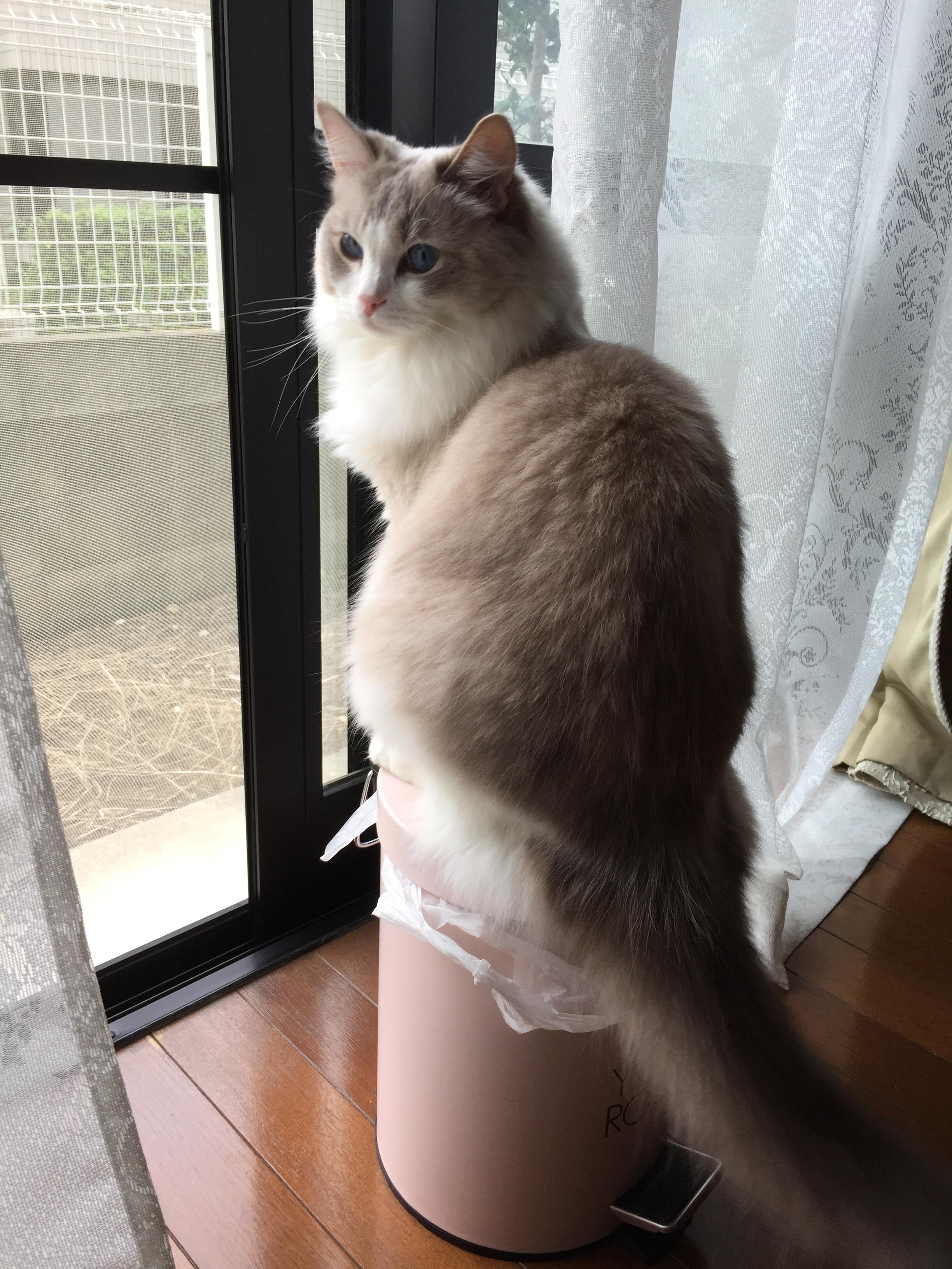 朝、出がけに撮影。しっぽを顔の前に抱えて