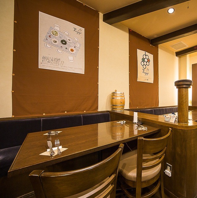 シェフ厳選素材の季節のお勧めコース(本日の小さな前菜・その日仕入れた旬素材のアンティパスト・まるえもん牡蠣のサルティンボッカ・サンマと大葉のトマトソーススパゲッティ・その日仕入れた鮮魚の魚料理・子羊のとスカモルツァチーズのオーブン焼き・本日のドルチェ等)はFuggiオーナーシェフ厳選素材を使用したメニューを存分に楽しめるお勧めコースで4,500円。コースでのご利用時、貸切も承ります!
