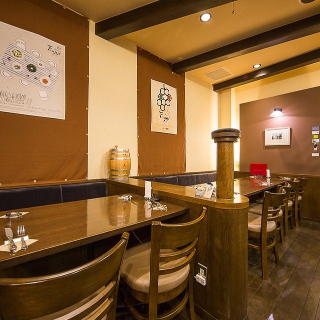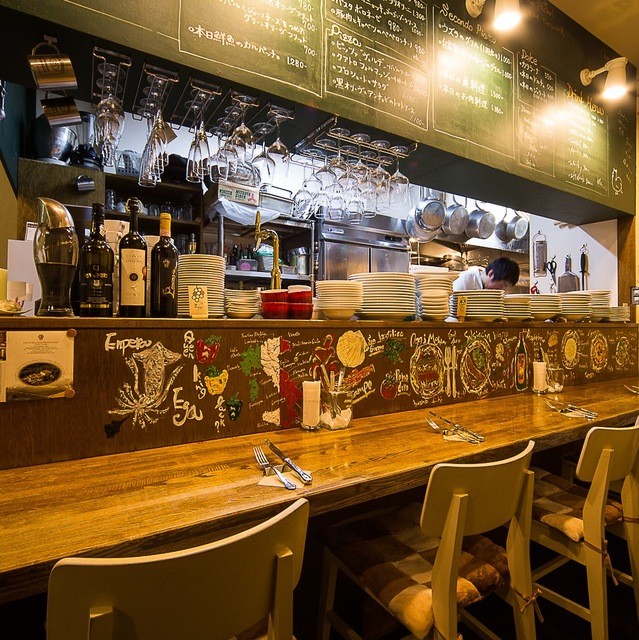 オシャレな空間、落ち着いた空間、席が広い、カウンター席あり