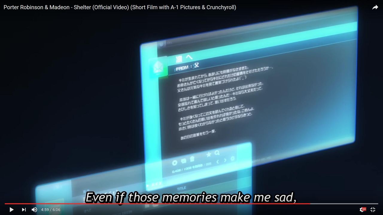 「ポーター・ロビンソン&マデオン - Shelter(オフィシャルビデオ)(A1-Picturesとクランチロールによるショートフィルム)」スレより。