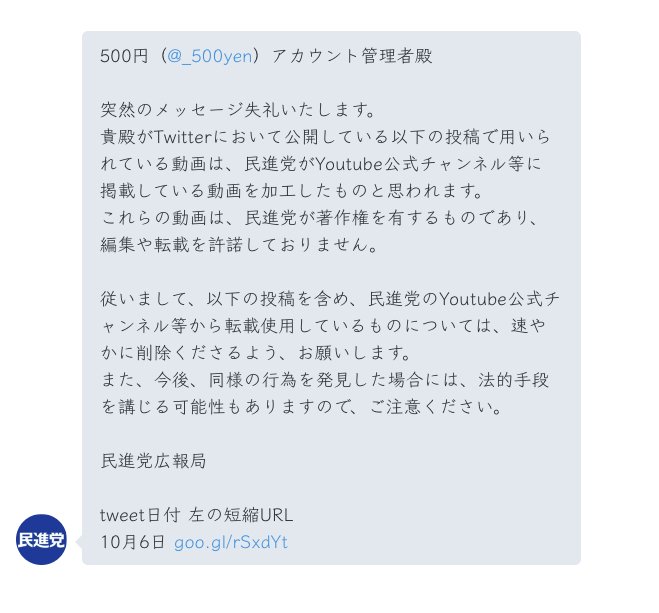 民進党広報部から該当する蓮舫代表定例会見の動画を削除せよとの言論弾圧DMが来たので、