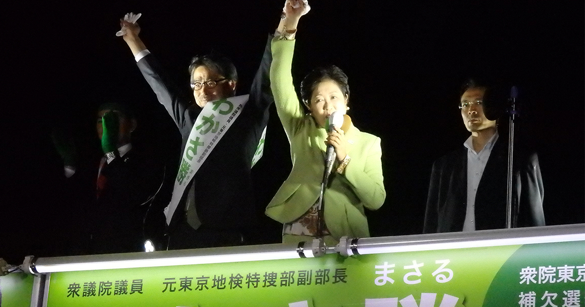 東京都10区(豊島区、練馬区の一部)は、小池百合子元衆議院議員が都知事に転じたために補選となった。先日の東京都知事選挙で自民党への対決姿勢を見せて当選した小池都知事だが、今回の選挙では初日から若狭候補の応援に駆けつけた。