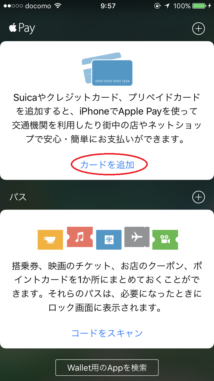 iPhoneでApple Payを使うには通常「Wallet」アプリからクレジットカードやSuicaなどを登録します。