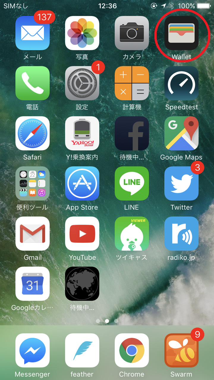 まずはApple PayにSuicaを登録します。前述通り、Walletアプリを使うので、ホーム画面からWalletアプリを起動します。