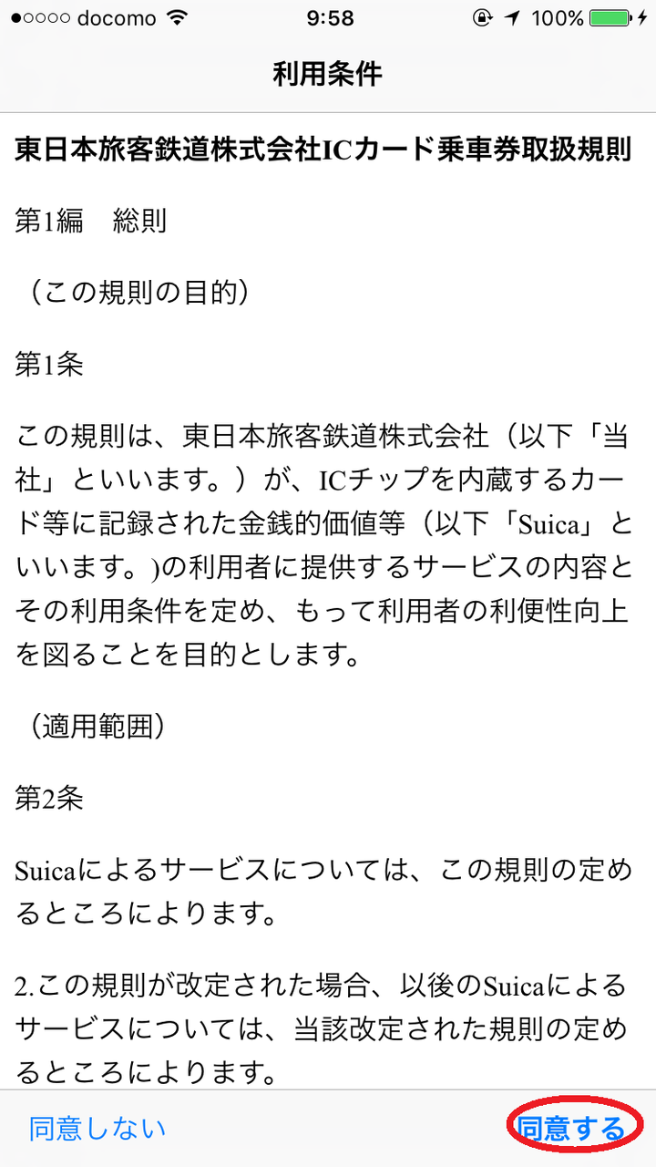 利用条件が出てきますので確認して「同意する」をタッチします。