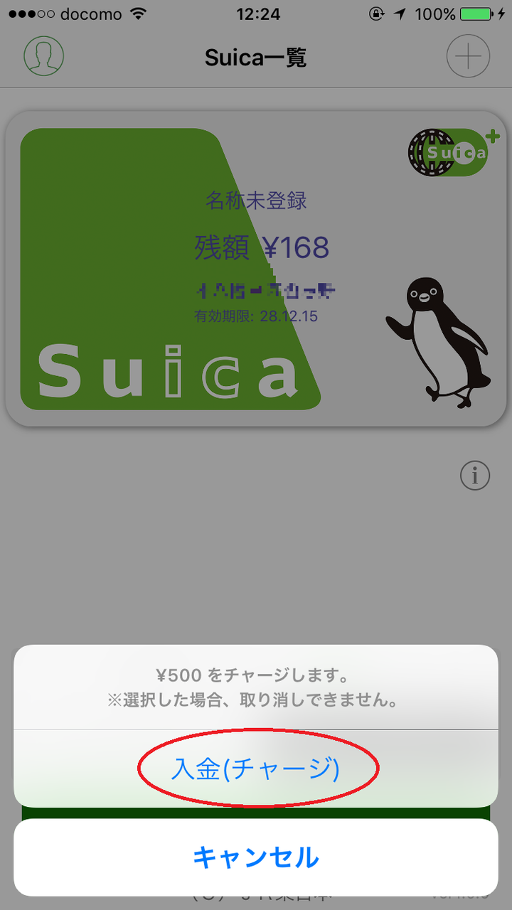 入力するとSuicaに入金するか確認する画面が出てきますので「入金」をタップします。