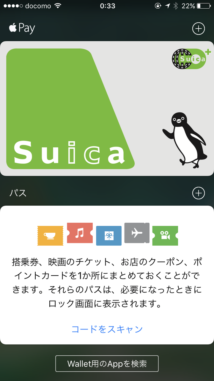 日本ではこれまでApple Payに対応していなかったので、Walletアプリを立ち上げても「パス」しか表示されませんでしたが、対応するiPhoneやiPadなどでは現在はパスの上に「Pay」が表示されるようになっています。