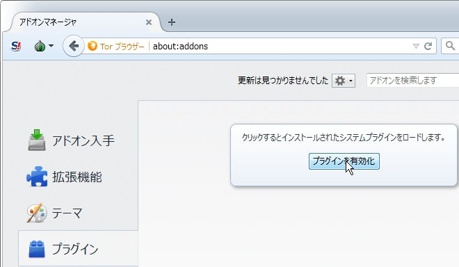 プラグインの、Shockwave Flash (Adobe Flash Player) などが無効化されている。