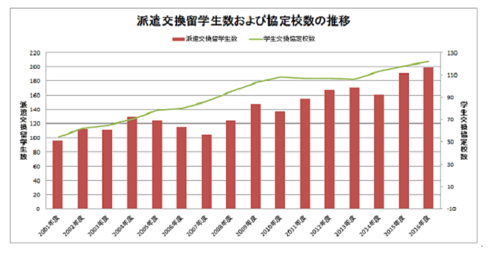 2016年5月1日現在の留学生数 1,518名 (対前年度比 + 100名)