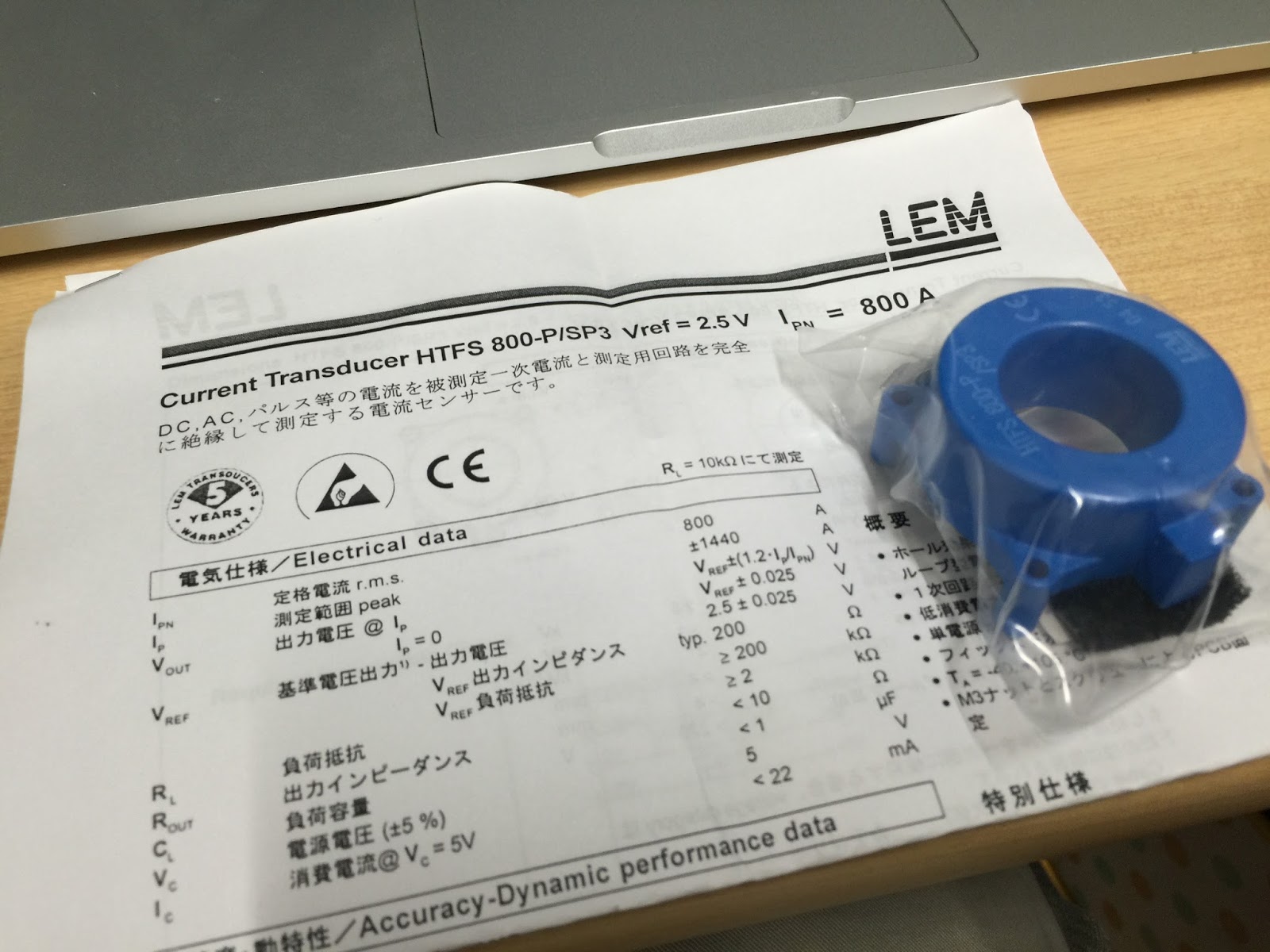 これは、800A(パルス1440A)まで測定できる電流計になります.鈴商にて1500円で販売していました.見ての通り、絶縁した状態で計測ができるタイプです.このセンサを用いてディスクランチャーの電流波形を調べてみました.