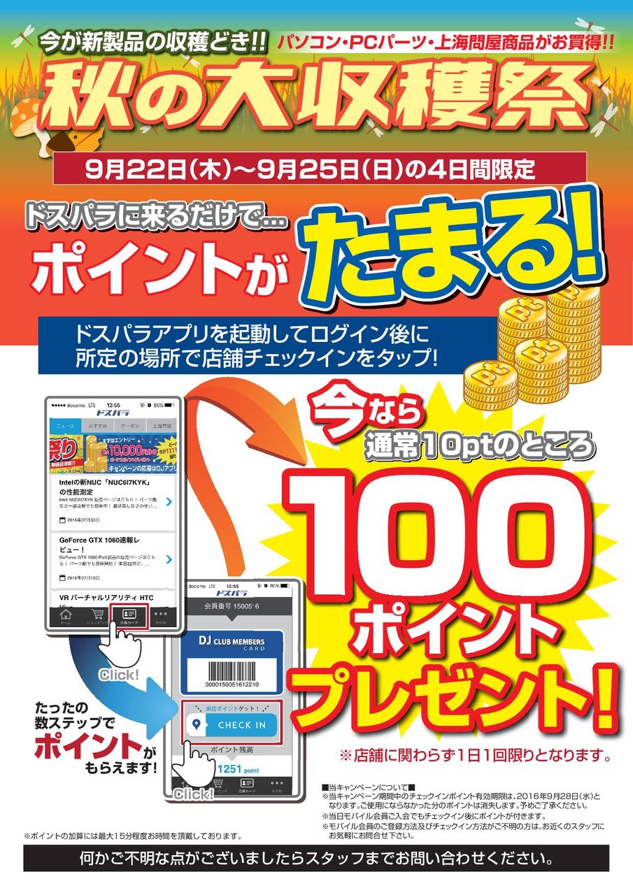 ・ドスパラ全店舗 店舗に関わらず 1日1回限り
