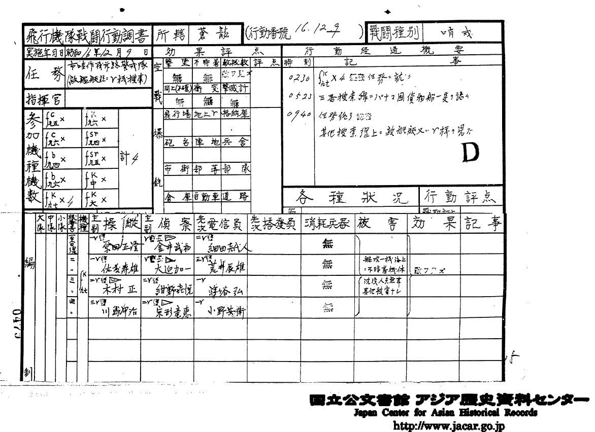 艦攻9機艦戦2機発[海軍記号:空母] 天候は各