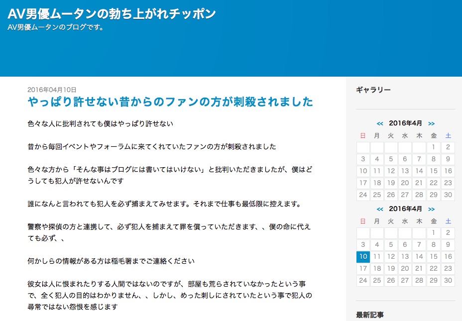 僕の今年一年はAVではなく犯人逮捕に全力を傾ける一年になる事を決心しました。今回の犯人を僕は絶対に許しませんし、必ず警察や探偵とタッグを組んで逮捕します。覚悟して置いてください