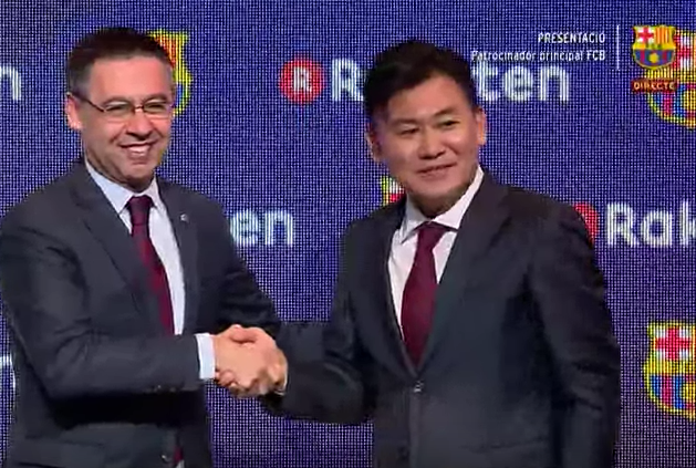 バルセロナのジョゼップ・マリア・バルトメウ会長と、楽天の三木谷浩史代表取締役会長兼社長が出席のもとで行われた調印式で合意に達した。今後、数週間以内にソシオの臨時総会で最終承認される見込み。
