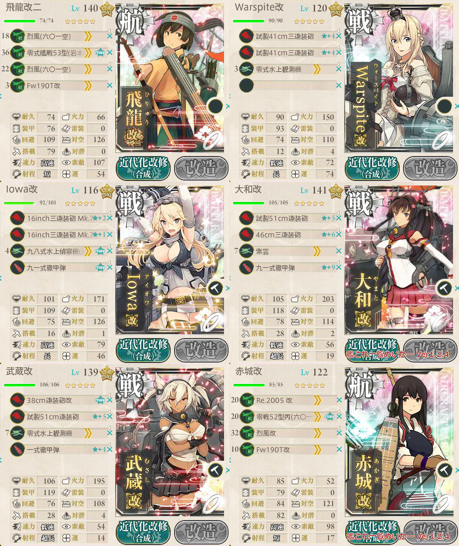 ただ金剛型のみとかだとちょっと心配ですかね、火力的にも・・・。