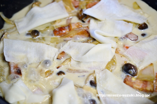 ぜひお試し下さいませ〜。ワンタンの皮でクリーム煮