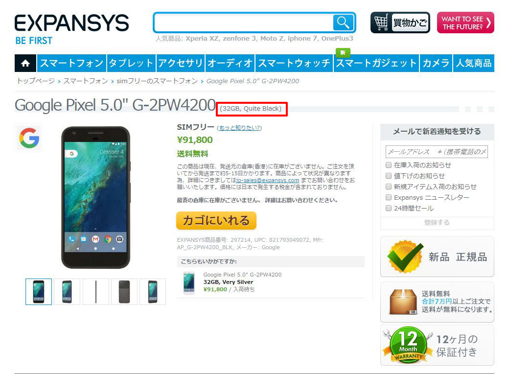 やる気満々の案内で、これは期待がもてそうだが、実際に計算してみると、128GBで総額約11万円弱となる。1ShopMobileより高いが、品薄気味の1ShopMobileに対して在庫を多く抱えるhandtecの方が求めやすいことは確かだ。すぐにPixelを購入したい方はExpansysや1ShopMobileよりもhandtecを狙った方がいいかもしれない。