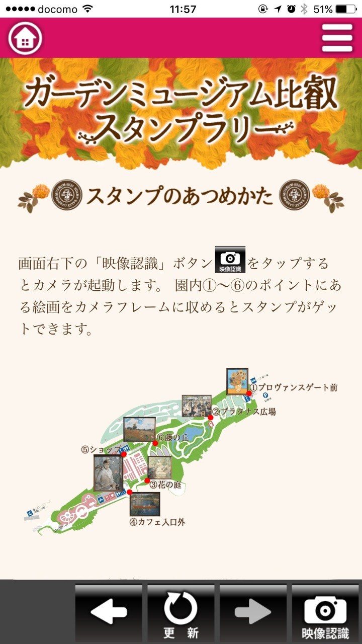 アプリの中にスタンプラリーの参加方法やスタンプをもらえる陶板の場所について記載があるので、アプリの使い勝手になれていない人でも容易に参加可能だ。