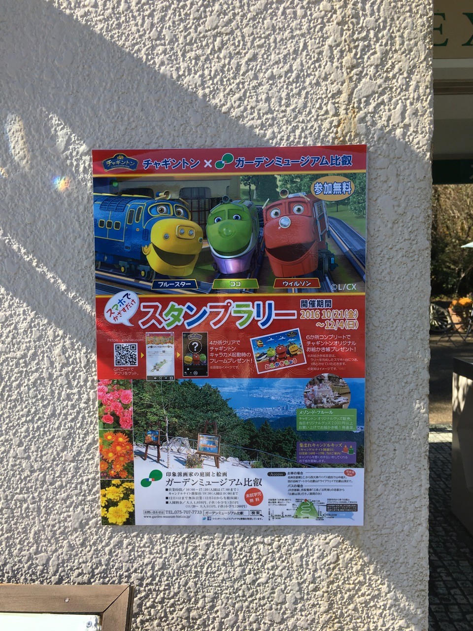 ガーデンミュージアム比叡がフジミックと連携してフジテレビ系にて放送中の大人気鉄道CGアニメ「チャギントン」と、フジミックが提供している「メディアトリガーplus」を使って2016年12月4日(日)までの期間限定イベントを開催している。