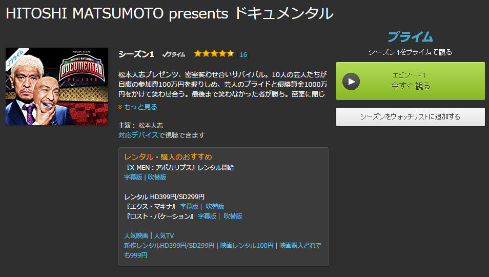 松本人志によるバラエティ番組「HITOSHI MATSUMOTO Presents ドキュメンタル」が、Amazonプライム・ビデオで独占配信を開始した。
