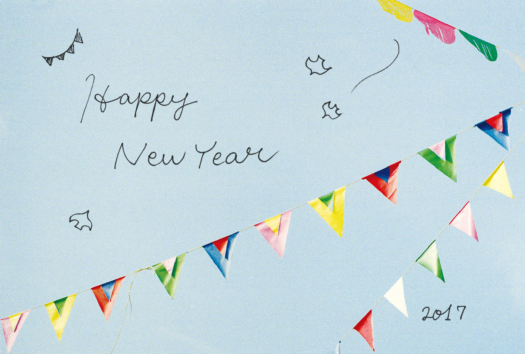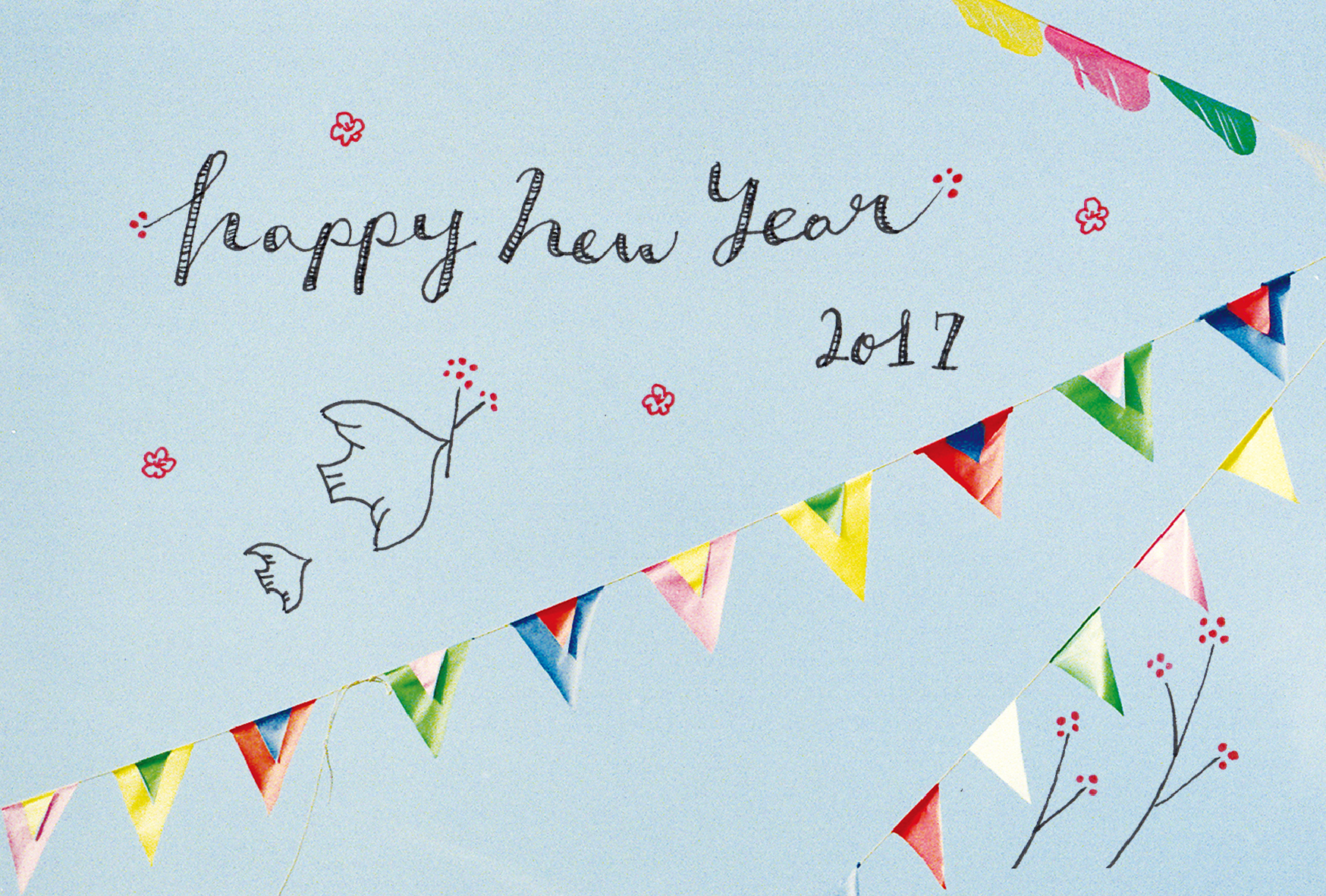 来年の2017年は酉年ということで、波々伯部は青空を写した1枚に鳥のイラストを描きました。