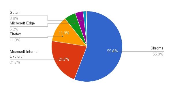 11月はChromeとFirefoxがシェアを増やし、Microsoft Internet Explorer、Microsoft Edge、Safariがシェアを減らした。Chromeのシェアは55%を突破し、引き続き増加する傾向を見せている。