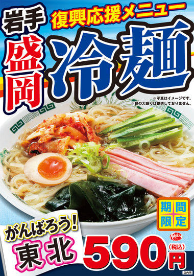 震災直後に日高屋が「東北応援!」とか謳ってキムチ入った冷やし中華を盛岡冷麺って名前で売ってたのは未だに許さんで