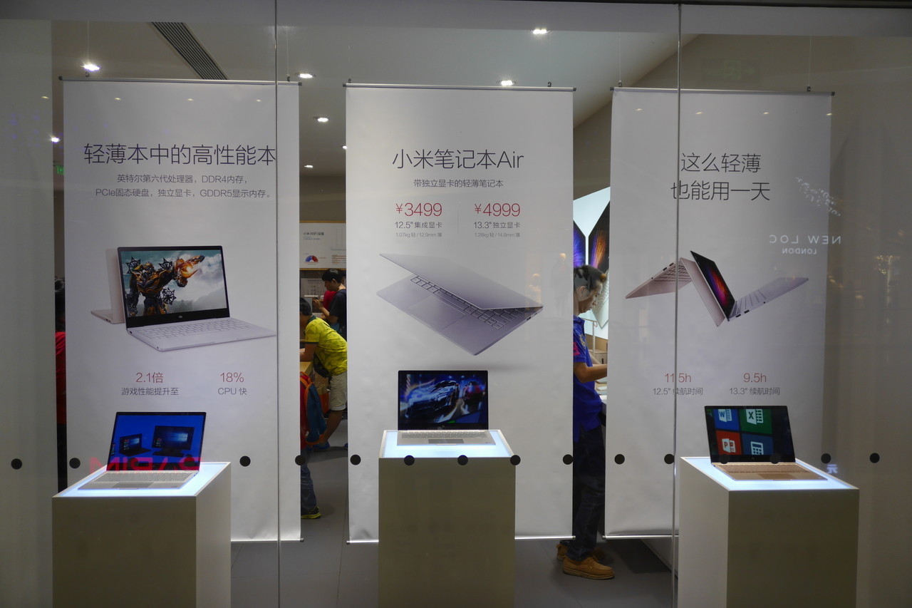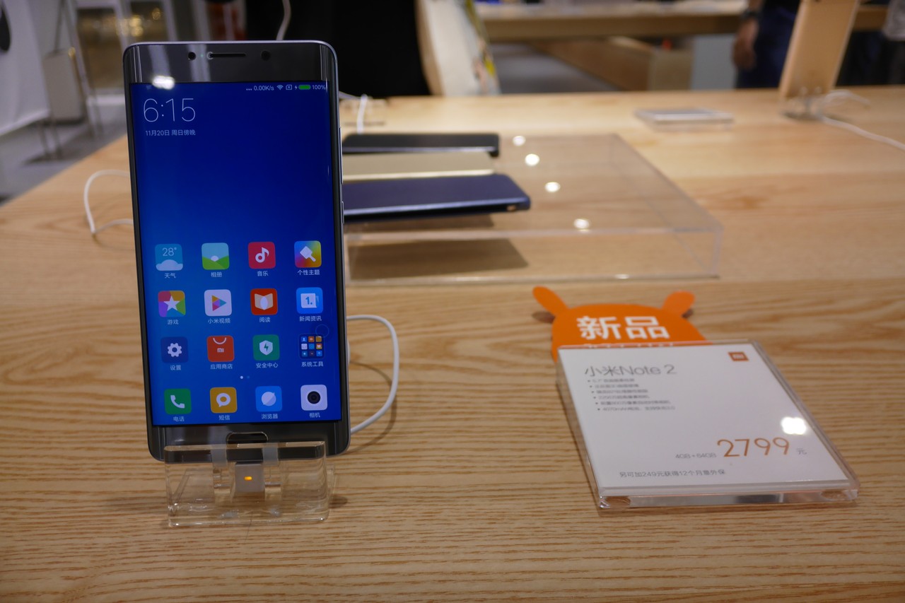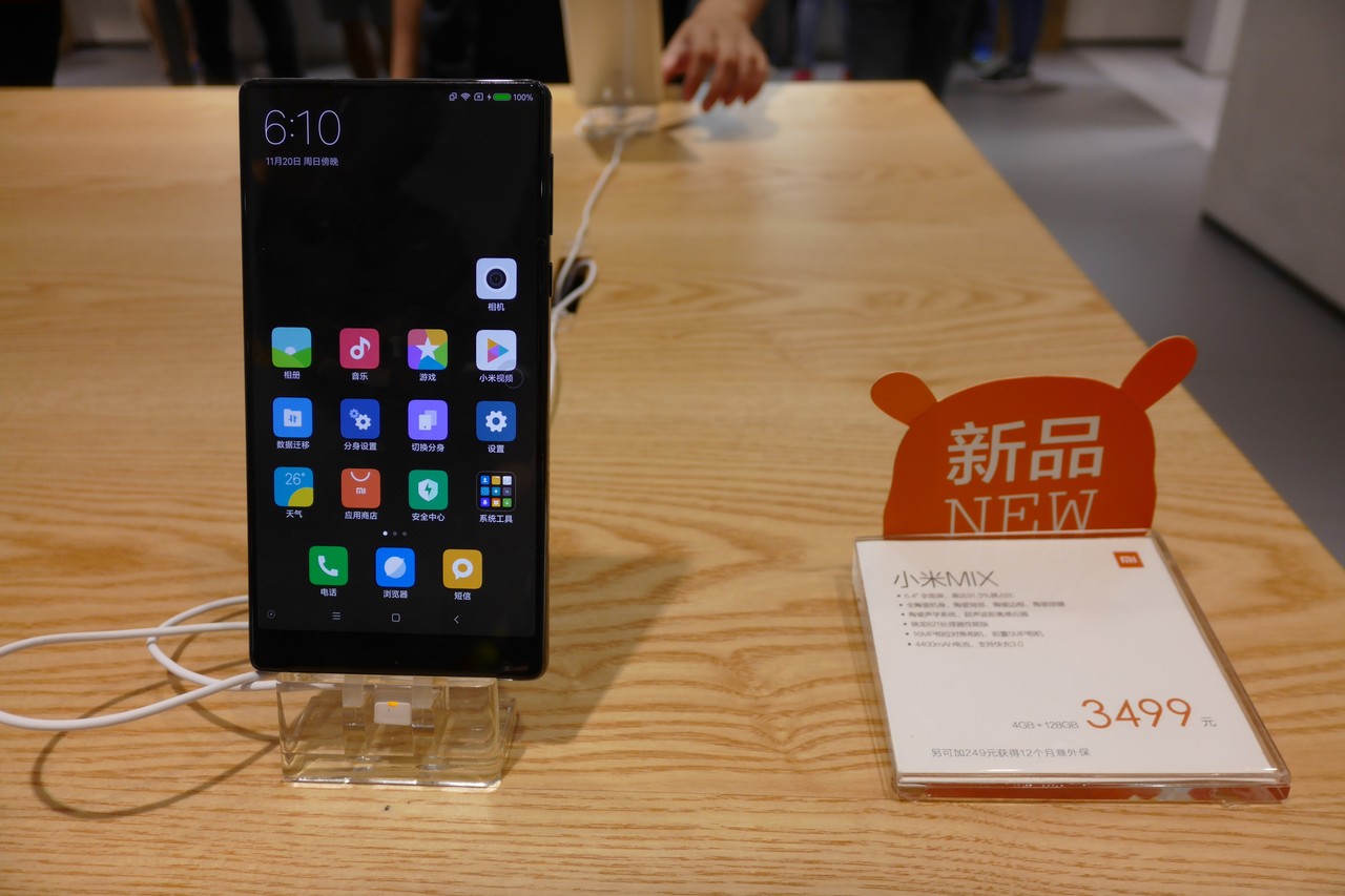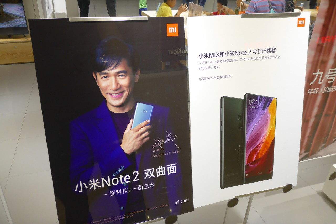 訪問時はシャオミの新製品「Mi Note 2」や同社のコンセプトモデルとなる「Mi MIX」などの発売直後ということで、店先には両製品のPOPが大々的に掲示されていました。