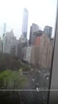 The Central Park South skyline in the woman’s video shows a building under construction and not rising above the buildings behind it. On Friday, that building was seen by a reporter still under construction but much higher than the buildings behind it.