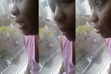 The window appears to be overlooking the southwest corner of Central Park, suggesting she is inside Trump International Hotel and Tower, a different building that sits roughly on Central Park West near W. 60th Street. Donald Trump does not own that building but his organization appears to manage the hotel and condos inside it.