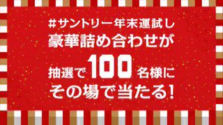 \残り7日!/ 🎊今年の締めは🎊 #サントリー年末運試し 💪 何が当たるかお楽しみ😊 豪華詰め合わせがその場で当たる🎁🎁🎁 フォロー&リツイートでいますぐチャレンジ✨ goo.gl/OyZjBF pic.twitter.com/3IstL1P6Nn