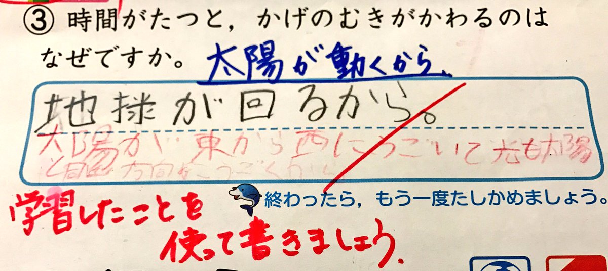 ¡ÖÃϵå¤Î¼«Å¾¡×¤ò¤Þ¤À½¬¤Ã¤Æ¤¤¤Ê¤¤¤È¤¤¤¦Íýͳ¤Ç¡¢¡ÖÂÀÍÛ¤¬Æ°¤¯¡×¤ÈÅú¤¨¤í¤È¤¤¤¦¶µ°é¤Ï¡¢Ëͤϴְã¤Ã¤Æ¤¤¤ë¤È»×¤¦¡£¡Ê¾®³Ø¹»»°Ç¯À¸¤Î©»Ò¤Î¥Æ¥¹¥È¤è¤ê¡Ë