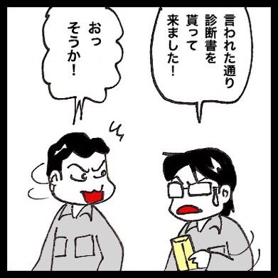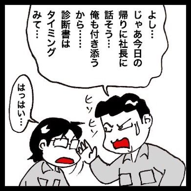 3000円払って診断書もらって、Eさん付き添いで上司に伝えて。
