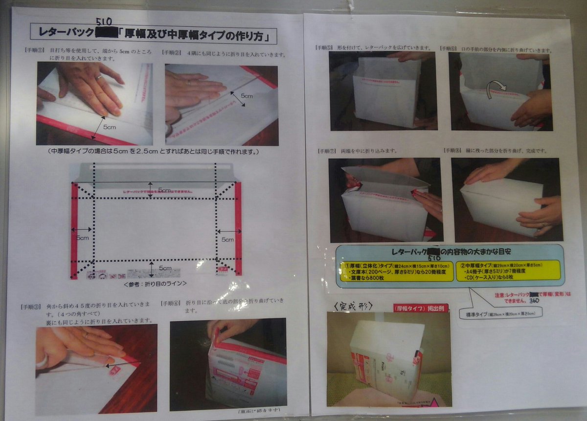 @lunch5618 皆さんの反応見ていると、レターパックプラス(510円)に厚さ制限の表記がないことご存知ない人もちらほらって感じ? pic.twitter.com/wKwKChzuwK
