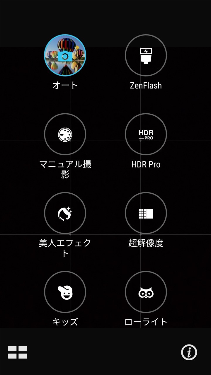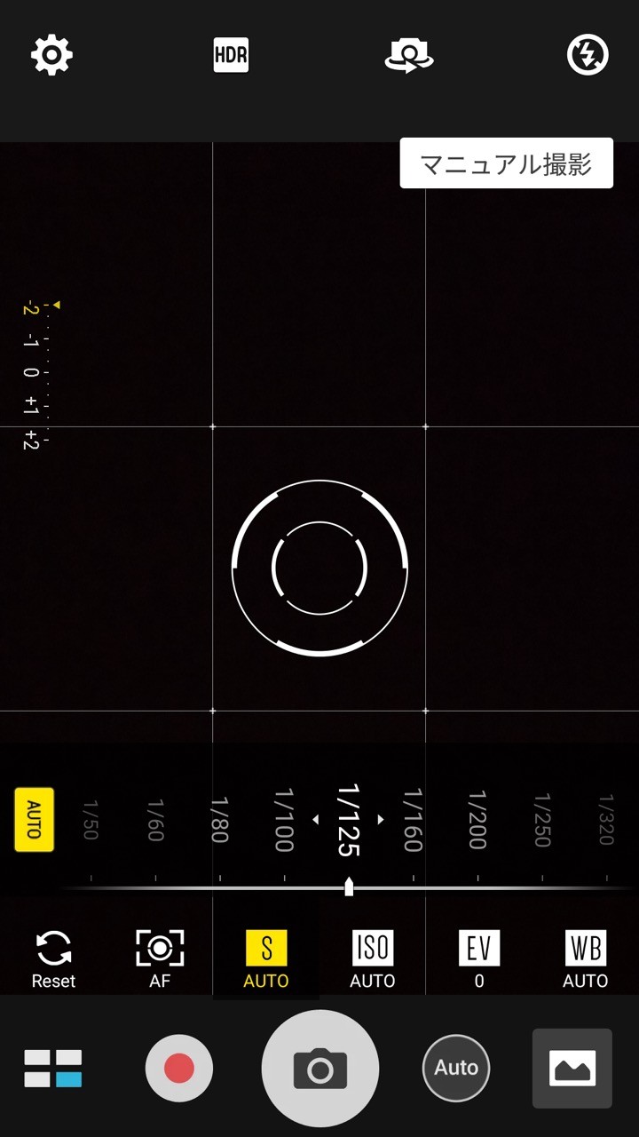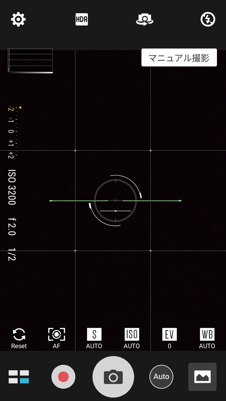 上位機種のZenFone 3などと比べると画素数こと下がっていますが、機能的には大きくは変更されておらず、マニュアールモードなどにも対応。縦持ちでシャッターボタンの右側の「M」ボタンで簡単にマニュアルモードに切替可能。