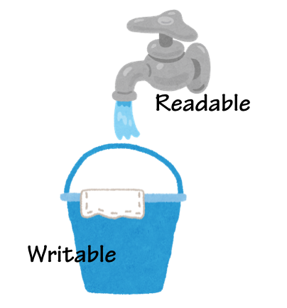Writableのdrain以外は、分りやすいと思います。drainに関してですが、このイベントは少し特殊です。一般に、書き込みが読み込みより速いとは限りません。その様な場合に、読み込みが書き込み速度を上回る場合があります。もし上回った状態をそのまま続けた場合、もちろん書き込みは行われないわけですから、Writableの内部バッファに読み込みから流れてきたものが溜まり続ける状態になってしまいます。その様な状況はあまりよろしくありません。そのため、Writableのwriteは、内部バッファが必要になった(つまり書き込みが追いつかなくなった)状態ではfalseを返す様にできています。そして、書き込み待機がなくなった時にdrainを呼び出すのです。通常は、これらを監視して、Readableに的確に処理を待つように通知することが必要です。心配しないでください、まさにpipeがそれを行ってくれるため、通常あなたはこのイベントに関して余計な気を回す必要はありません!