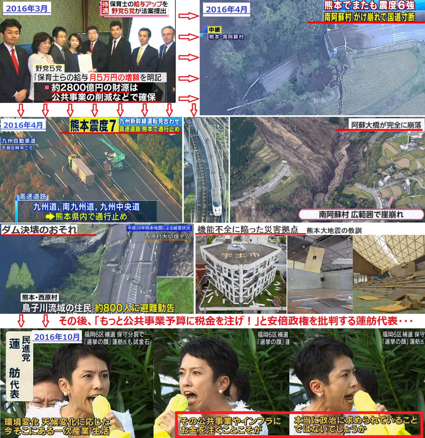 そしたら蓮舫代表が「安倍はもっと公共事業予算を増やせよ!」と正反対の批判をやりだす始末・・・