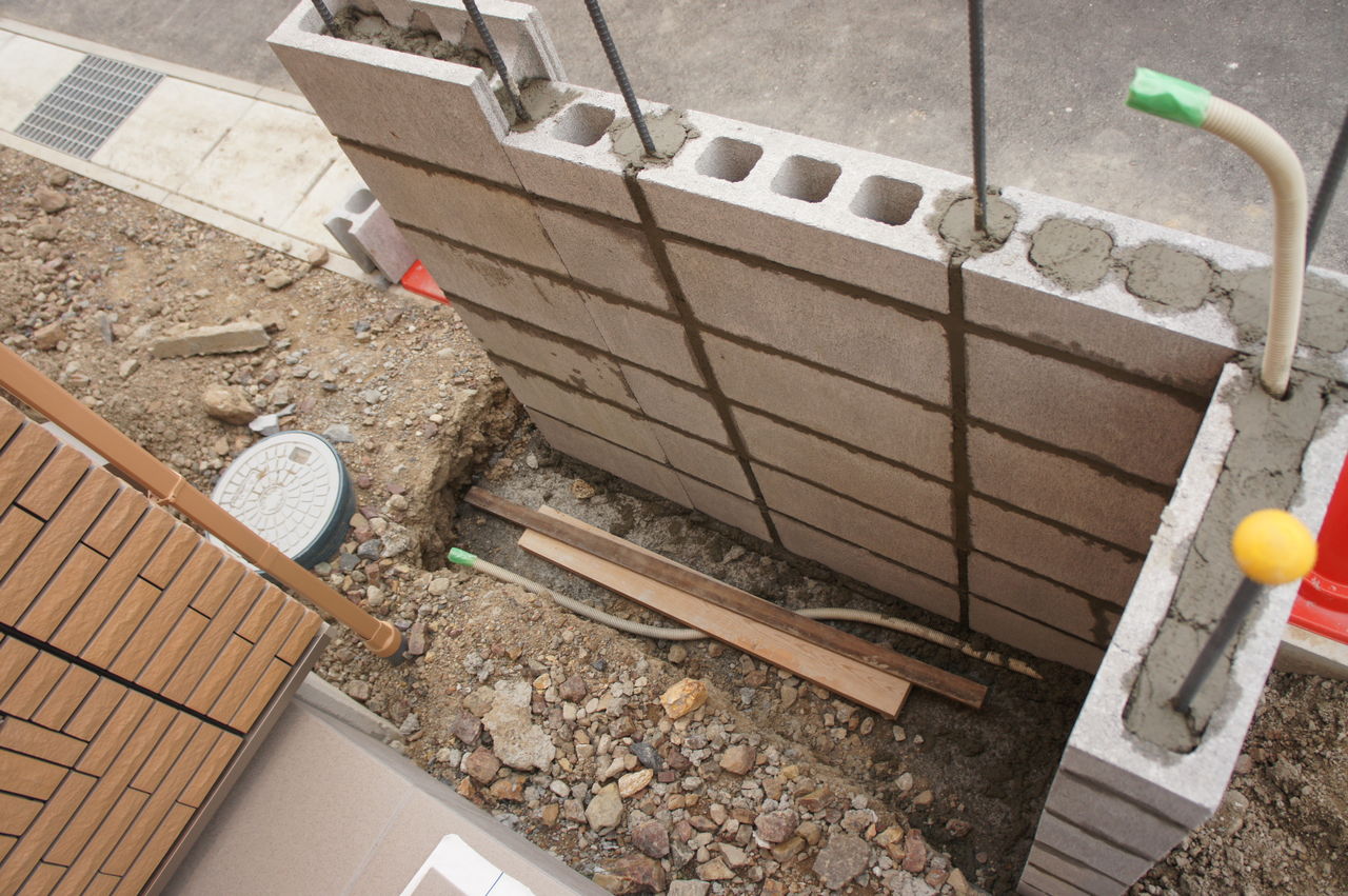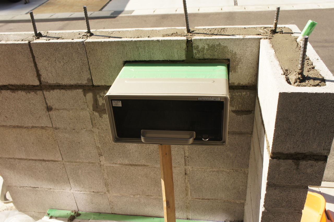 インターホン用の配線がブロックの中を通っています。