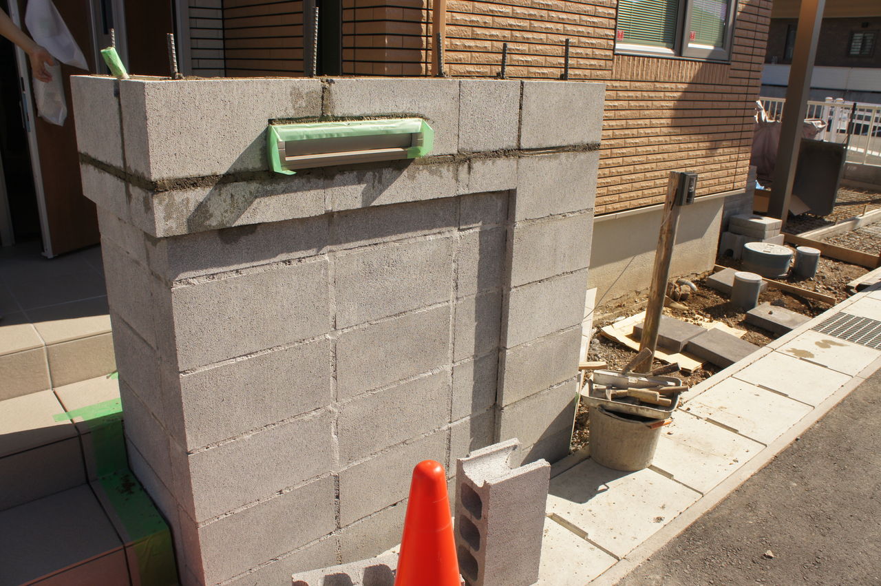 門柱のブロックが積まれました。