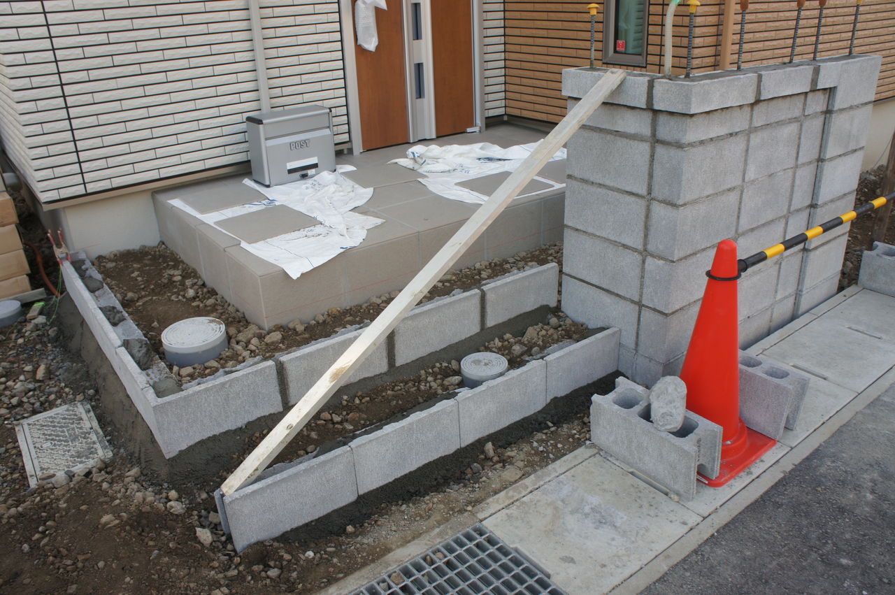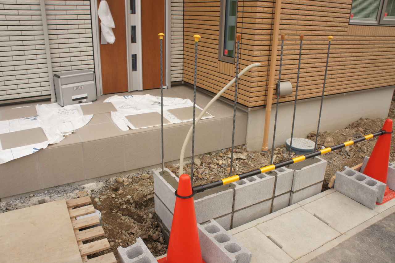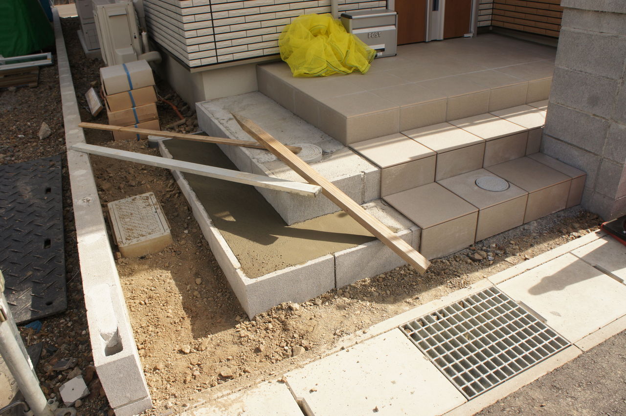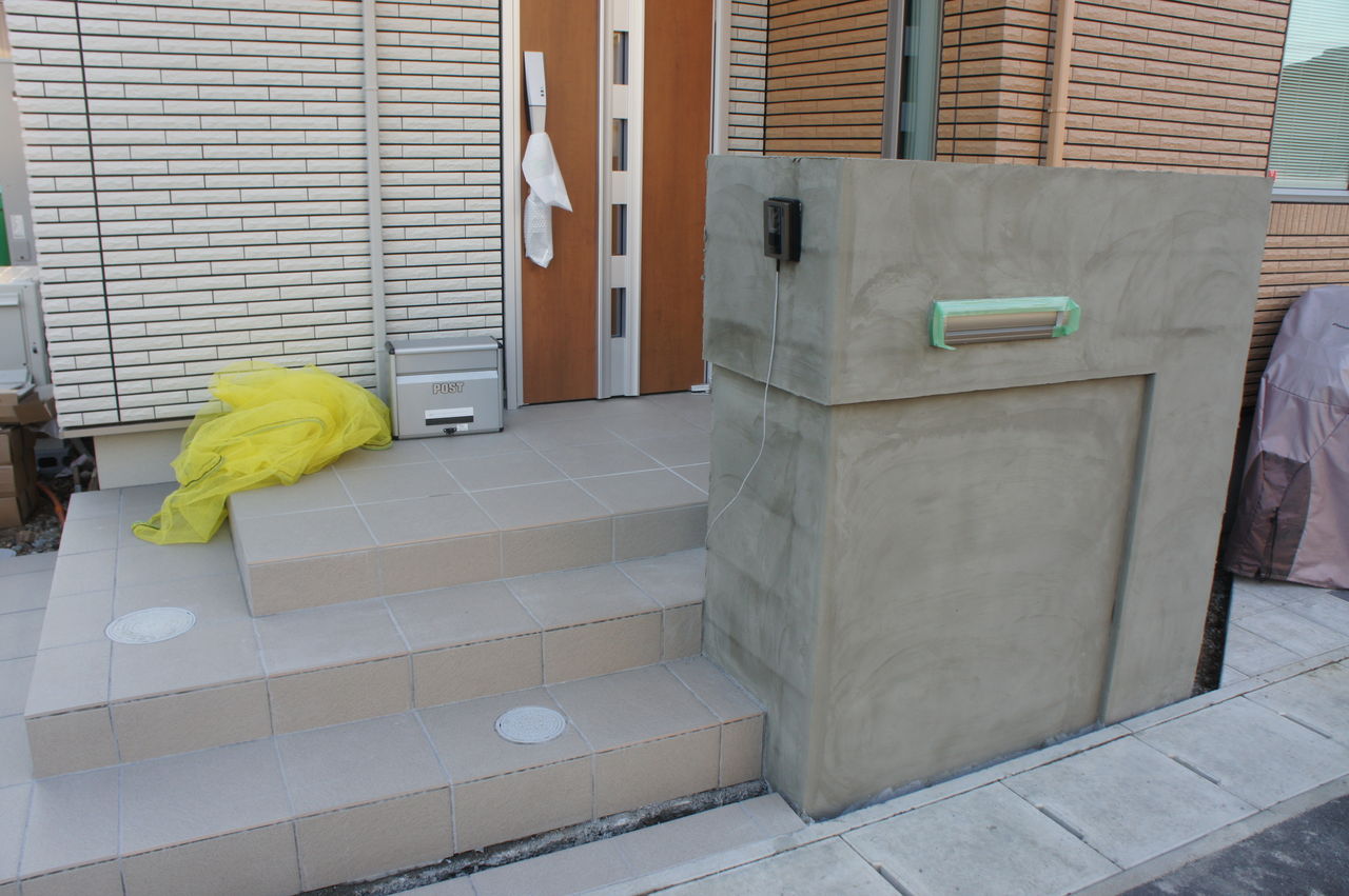 写真のようにポーチ側面(左側)にも階段をつけたかったので、我が家の場合は、階段部分すべてを外構屋さんに任せました。