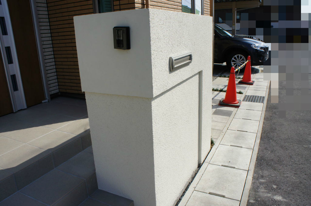 玄関ドアの横にあるポストは外構屋さんに貸してもらったものです。