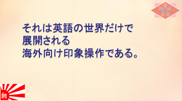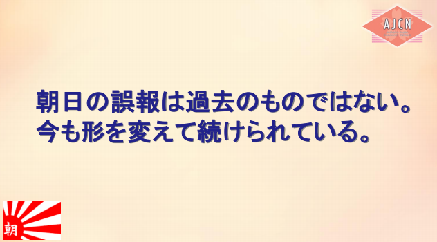 やっぱり、朝日新聞は変ってなかった。 朝日は今でも懲りもせず、日本人を貶めるプロパガンダを英語でこっそりと展開しているのだ。今後、朝日が慰安婦問題に関する記事に載せる時は、誰が慰安婦に仕事(セックス)を強要したのか、誰が彼女たちを売ったのか、主語(朝鮮人業者や親親戚)を明確にさせ、同時に、吉田証言の捏造報道を朝日が訂正・謝罪した事実を必ず併記させるように要求すべきでしょう。我々日本人の声は、外国メディアにとっては痛くもかゆくもないものの、朝日新聞には十分な脅威となる。それを完全に無視するようならば、朝日にはやはり、潰れてもらうしかない。