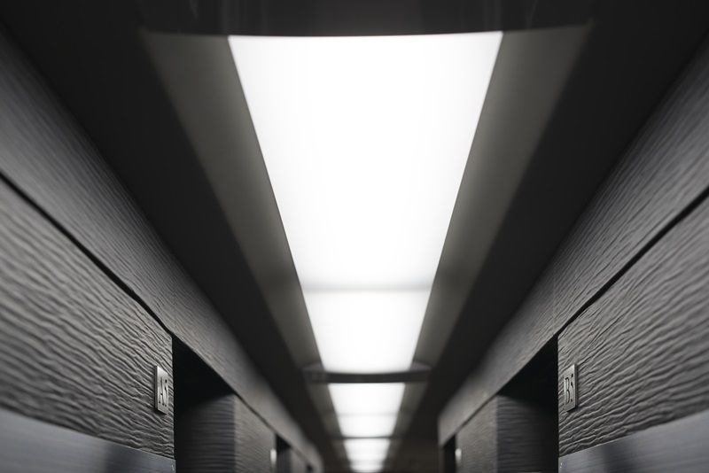 大きさを確保。居室内にはダウンライトと間接照明(前壁上方向)の2つの照明があり、用途にあわせて自由に