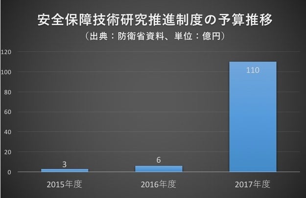 16年1月に閣議決定された「第5期科学技術基本計画」で、「国家安全保障上の諸課題に対し、産学官連携のもと、必要な技術の研究開発を推進する」とされていることも増額の背景にあるという。また、自民党の国防部会も同様の主張をしている。