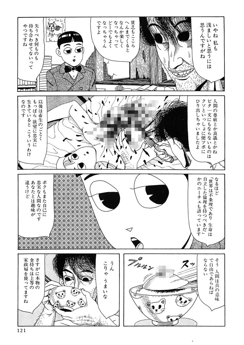 どの話も危ない奇形人間が大量に出て来ますし、中々他の漫画では見られない、本当に化け物じみた化け物がたくさん見れます。