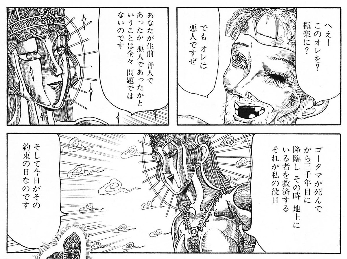 極悪人自身「へぇーこのオレを?極楽に?でもオレは悪人ですぜ」と大日如来に疑問を投げかける。