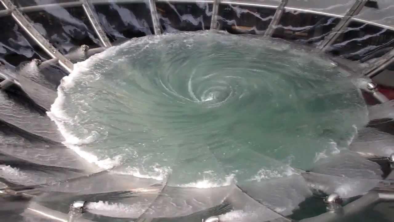 この映像からは大きさが分かりにくいけど、直径約21メートルで下の階まで水が流れ落ちていくみたいだ。