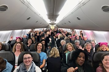 When your plane is 98% full of badass, vibrant women who will be heard...and three dudes :)… https://t.co/wimrFnXOMI