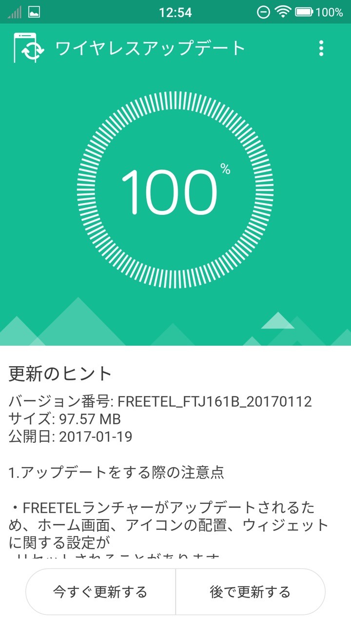 更新は発売後5回目で、前回の8月から5ヶ月ぶり。これまでと同様にSAMURAI REIの本体のみでネットワーク経由(OTA)で行え、更新ファイルは前回のビルド番号「FREETEL_FTJ161B_20160811」の更新をしている場合には約97.57MBです。ファイルサイズは比較的大きめなのでできれば無線LAN(Wi-Fi)のほうが良いと思われます。更新内容は以下の通り。