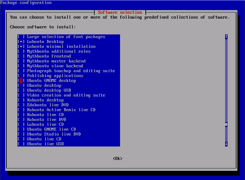 Lubunts Desktopの選択項目も見つけたのですが、どのようにしてそれを選択し、OKを実行するのかわかりません。